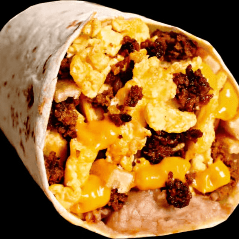 Chorizo, egg, hash browns, and shredded cheese