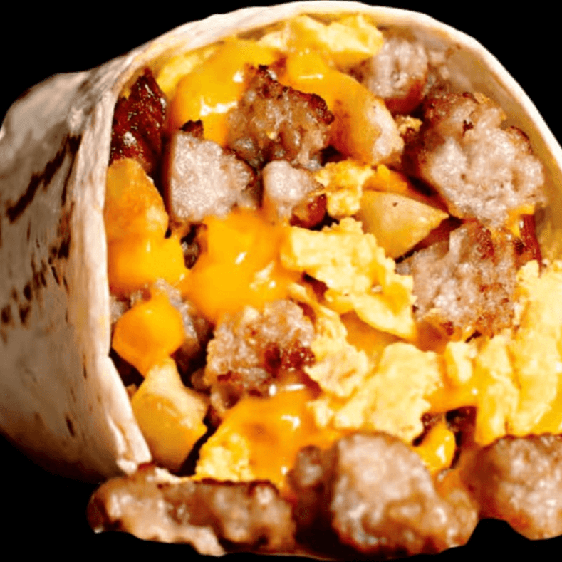 Sausage, egg, hash browns, and shredded cheese